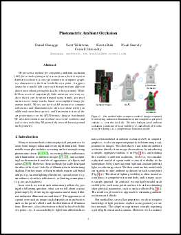 We present a method for computing Ambient Occlusion (AO) for a stack of images of a scene from a fixed viewpoint. Ambient occlusion, a concept common in computer graphics, characterizes the local visibility at a point: it approximates how much light can reach that point from different directions without getting blocked by other geometry. While AO has received surprisingly little attention in vision, we show that it can be approximated using simple, per-pixel statistics over image stacks, based on a simplified image formation model. We use our derived AO measure to compute reflectance and illumination for objects without relying on additional smoothness priors, and demonstrate state-of-the art performance on the MIT Intrinsic Images benchmark. We also demonstrate our method on several synthetic and real scenes, including 3D printed objects with known ground truth geometry.